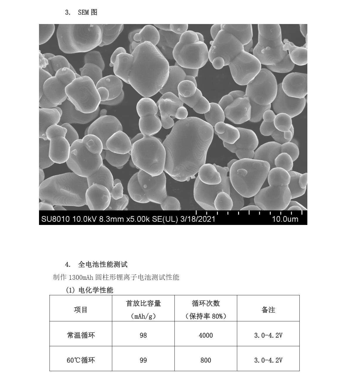 ZTM-10生產(chǎn)采用了的原材料,使用陰陽(yáng)離子共摻雜技術(shù)、表面修飾包覆技術(shù)和形貌控制技術(shù),提高了錳酸鋰材料的綜合性能。此材料為大單晶顆粒,擁有超長(zhǎng)的循環(huán)壽命,高低溫性能、倍率性能,適用于各種中高倍率、長(zhǎng)壽命動(dòng)力型鋰離子電池(如儲(chǔ)能系統(tǒng)、電動(dòng)汽車、電動(dòng)工具等用鋰離子電池等)。
